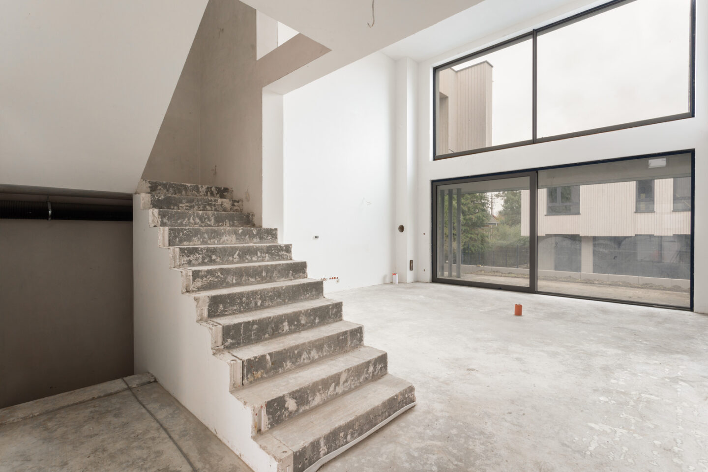 Połowa bliźniaka w bardzo dogodnym rozkładzie oraz doświetleniu. Doświetlenie zapewniają okna wychodzące na ogród wraz z przestrzenią o wysokości ponad 6 metrów dosięgającą samego sufitu. Dom posiada trzy kondygnacje: garaż podziemny wraz z piwnicą, parter oraz I piętro.